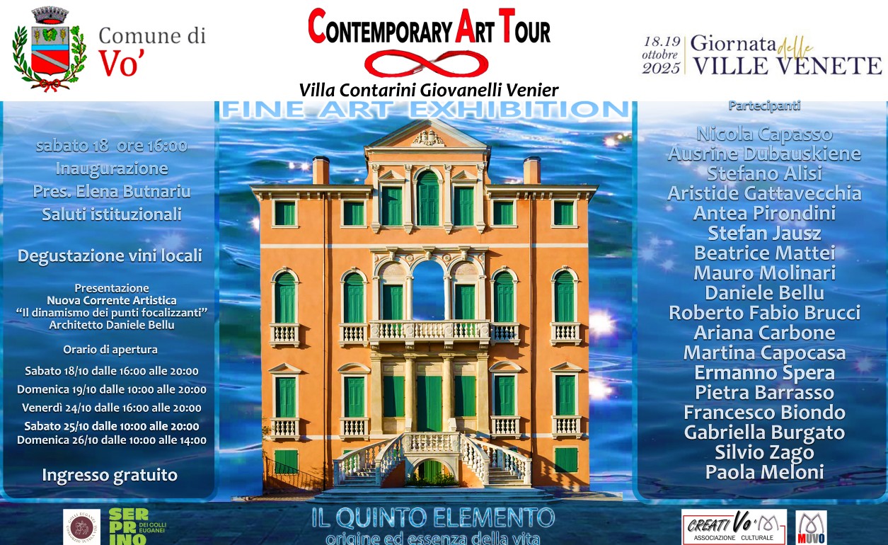 Villa Contarini Giovanelli Venier partecipa alle Giornate delle Ville Venete 2025, in programma il 18 e 19 ottobre. Un'occasione speciale per visitare una delle più significative dimore storiche del territorio di Vo', esempio armonioso di architettura veneta e custode di preziose testimonianze storiche. All'interno della villa sarà possibile visitare il Museo della Shoah, luogo di memoria e riflessione, e salire fino al terzo piano per ammirare la Fine Art Exhibition di Contemporary Art, mostra itinerante che intreccia arte moderna e storia. Saranno inoltre esposte le opere realizzate in estemporanea d'arte durante la Festa dell'Uva Vo' 2025, create dagli artisti: Anna Ambrosi, Antonella Ambrosi, Alessia Contran, Barbara Livian, Giovanna Ravarotto, Valter Tamiazzo e Daniela Zaghis. Scopri di più e prenota la tua visita